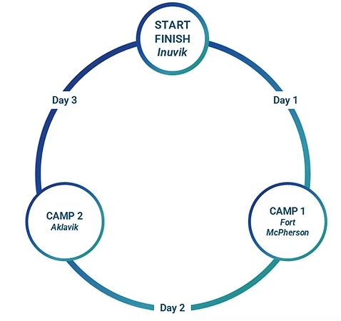 The adventure begins in Inuvik, a vibrant Arctic town perched above the treeline. After final checks and briefing, the race heads out, not into sunshine and scenery, but into cold air, open land and serious distance.